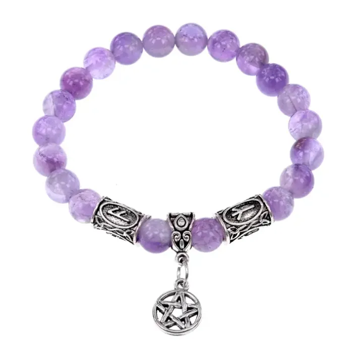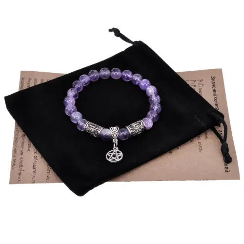 Рунический браслет-амулет с натуральным камнем аметист и символом пентаграммы.