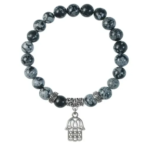Браслет Хамса (от сглаза и зла), Снежный обсидиан BSP-19-01