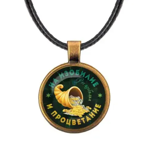 Кулон со шнурком из бижутерного сплава с изображением на тему изобилия и процветания.