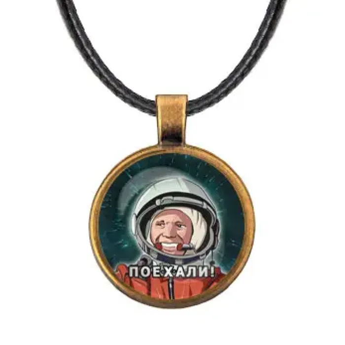 Кулон со шнурком "Поехали!" — это стильный аксессуар, который станет отличным дополнением к любому образу. Изготовленный из бижутерного сплава с покрытием под бронзу и стеклом, он отличается высоким качеством и оригинальным дизайном. Основные особенности: