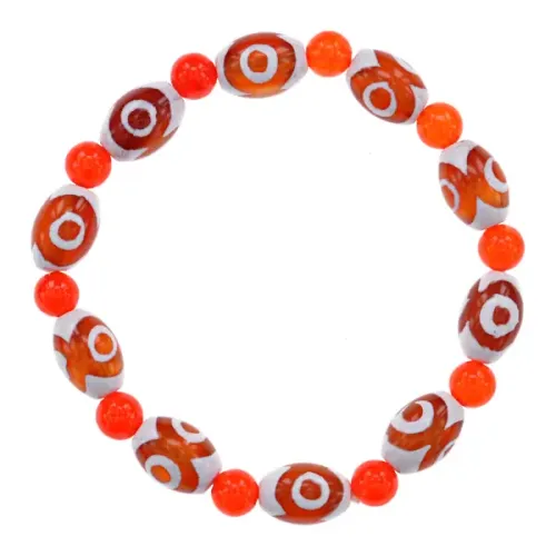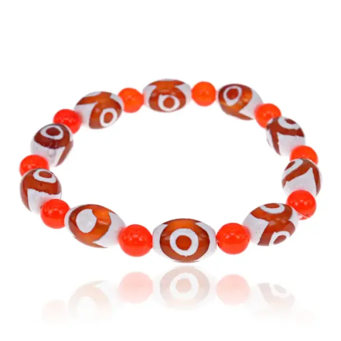 Стрейч-браслет с бусинами из натурального агата. В дизайне использована трёхглазая бусина Дзи.