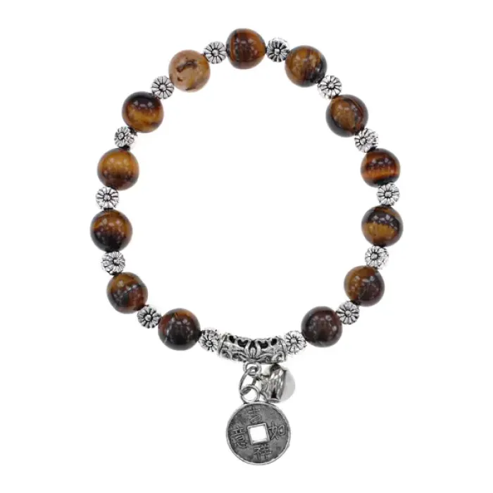 Браслет Монета, 8мм, Тигровый глаз BJBS-304-01