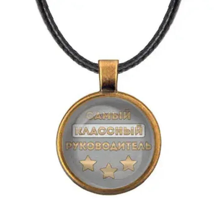 Кулон со шнурком "Самый классный руководитель" — это стильный и оригинальный аксессуар, который станет отличным подарком для любимого учителя. Изготовленный из бижутерного сплава с покрытием под бронзу и стекла, кулон обладает уникальным дизайном и долговечностью.