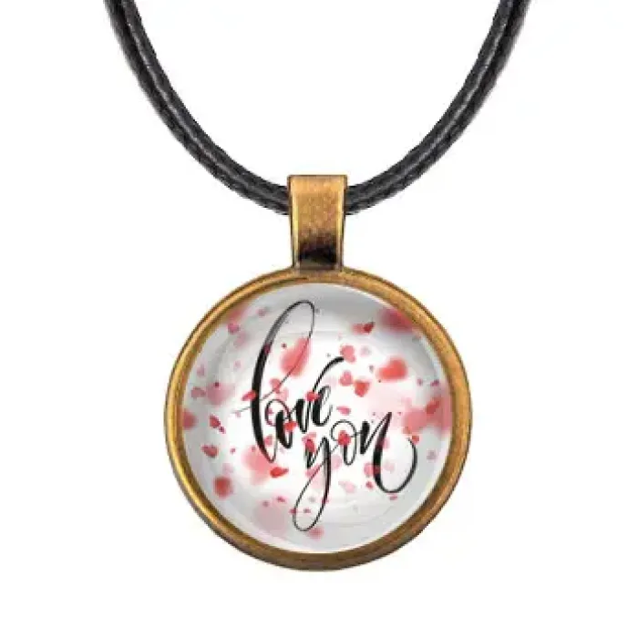 Кулон со шнурком "Я тебя люблю" — это стильный аксессуар, который станет прекрасным подарком для близкого человека. Символизируя любовь и привязанность, этот кулон выполнен из бижутерного сплава с покрытием под бронзу и дополнен стеклянной вставкой. Основные особенности: