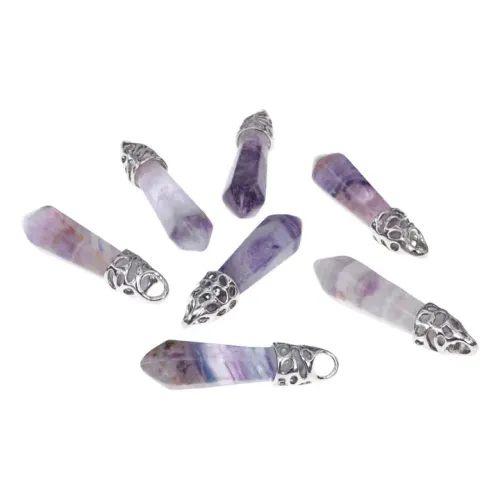 Подвеска-маятник для биолокации из натурального камня флюорит с металлическим креплением.