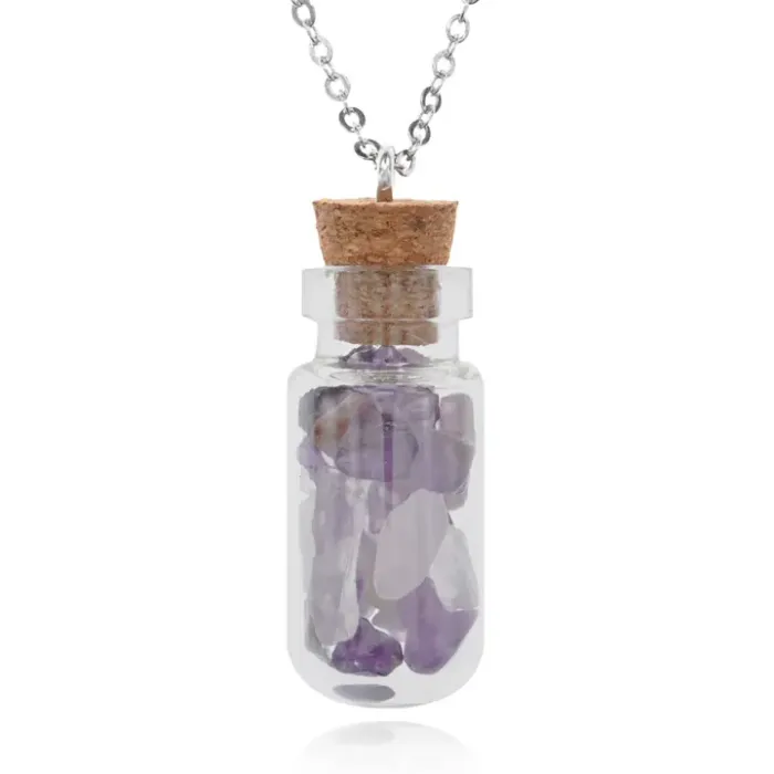 Кулон с камнем аметист, цепочкой и картонным подвесом BJK295-1