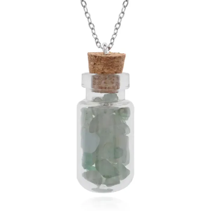 Кулон с камнем зеленый авантюрин, цепочкой и картонным подвесом BJK295-3