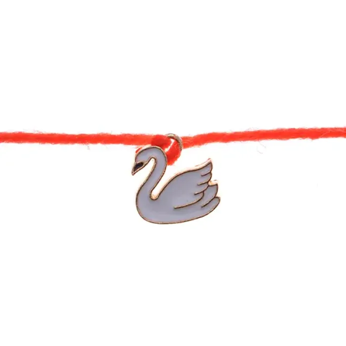 Браслет-оберег из шерстяной нити с декоративной подвеской в виде лебедя.