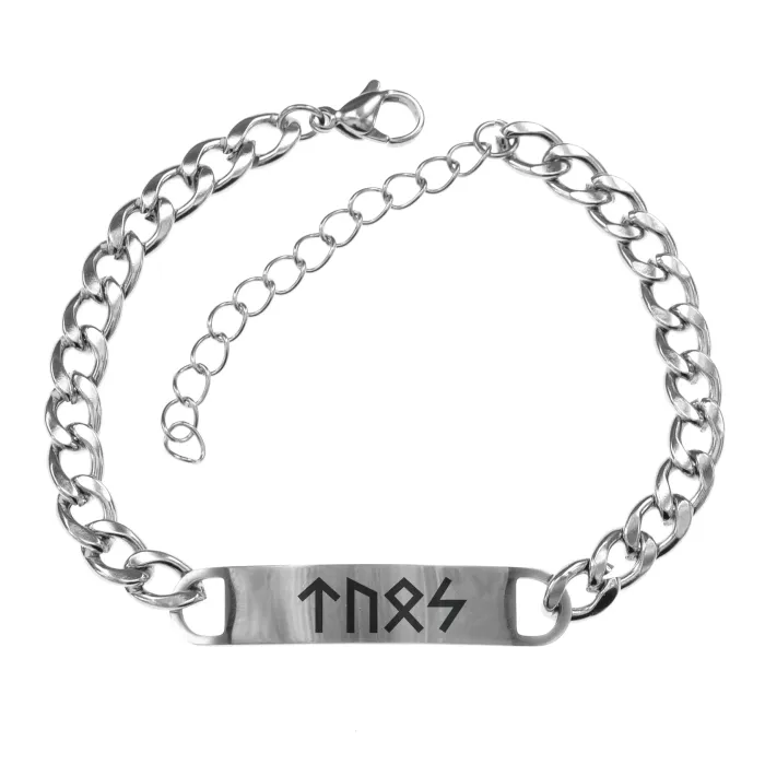Браслет-цепь из нержавеющей стали с лазерной гравировкой рун. Сувенирный аксессуар.