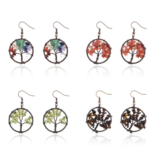 Серьги Дерево Жизни с натуральными камнями в ассортименте SE195