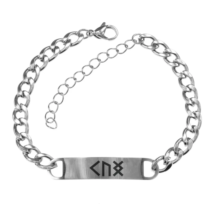Браслет-цепь из нержавеющей стали с лазерной гравировкой рунической формулы.