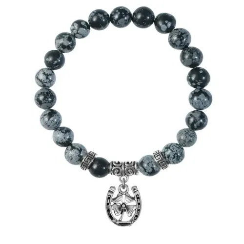 Браслет Подкова и клевер (счастье и удача), Снежный обсидиан BSP-19-P001