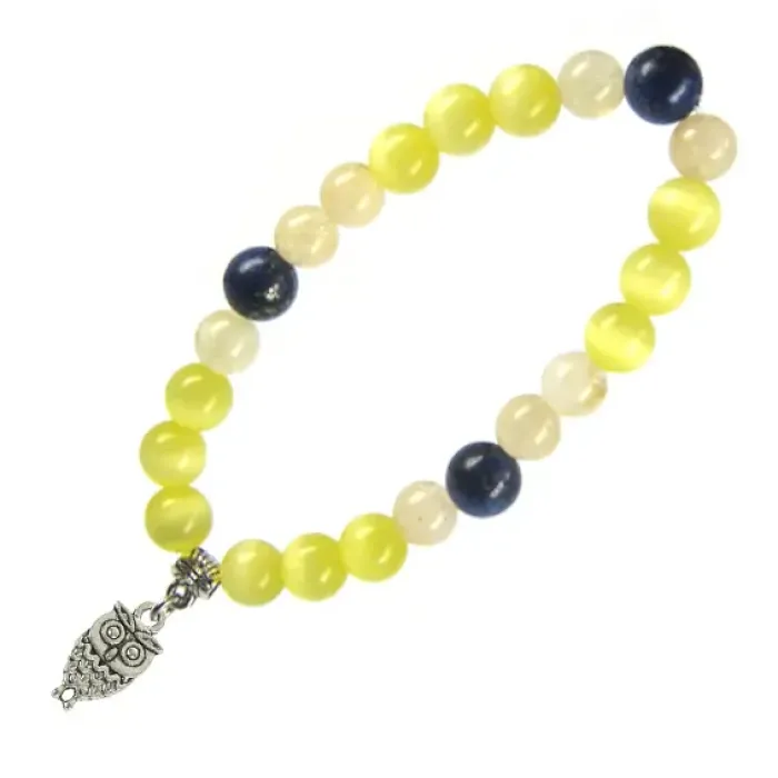 Браслет с подвеской на Мудрость (Сова) камень, 8мм BA070120