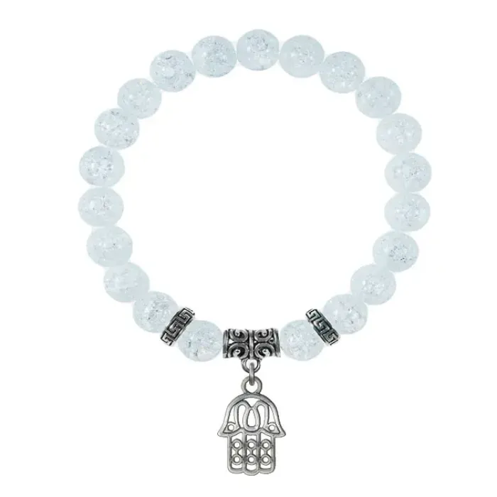 Браслет-амулет Хамса из синтетического сахарного кварца с подвеской в виде символа.
