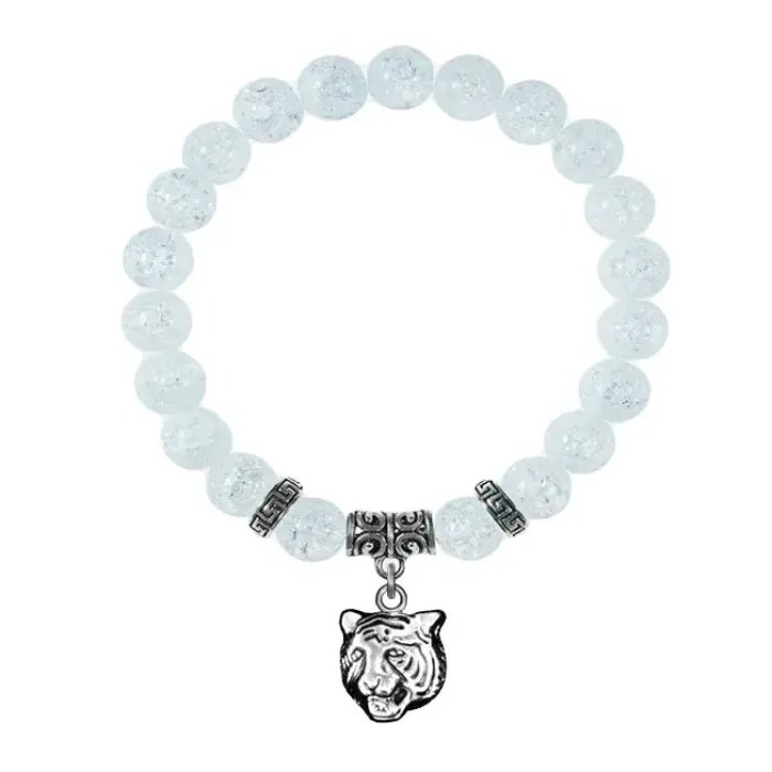 Браслет из синтетического сахарного кварца с подвеской-талисманом в виде тигра.