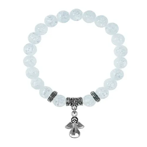 Браслет из синтетического сахарного кварца с подвеской-талисманом в виде ангела-хранителя.