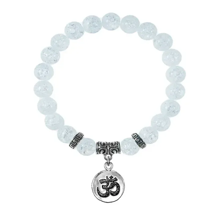 Браслет-амулет из синтетического сахарного кварца с подвеской в виде символа Ом.