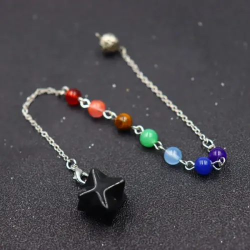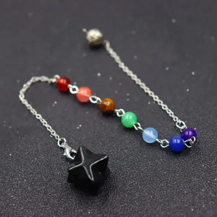 Маятник 7 Чакр Меркаба, 22см, черный агат BLK030-5