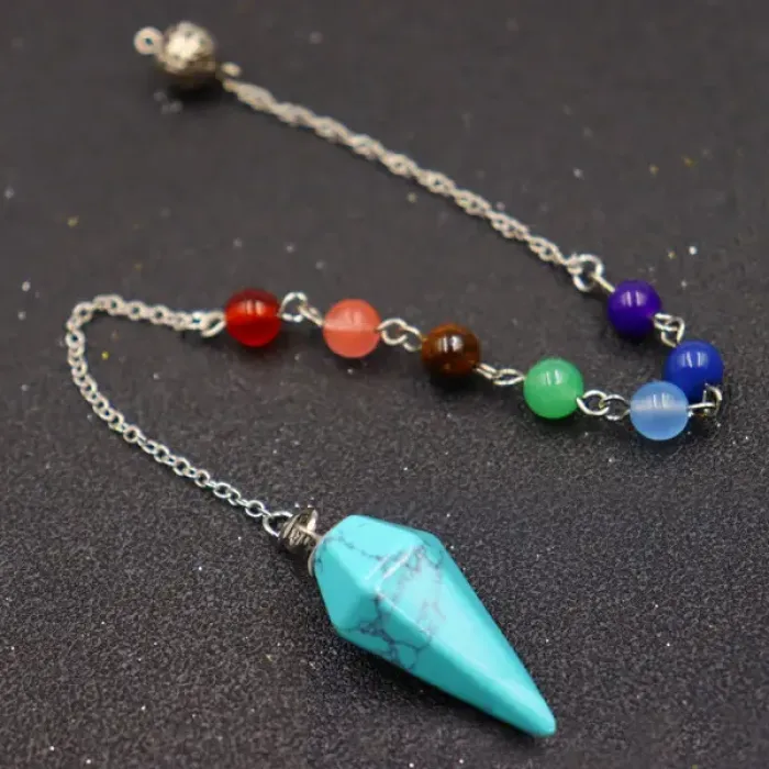 Маятник 7 Чакр Кристалл, 22см, бирюза BLK031-1
