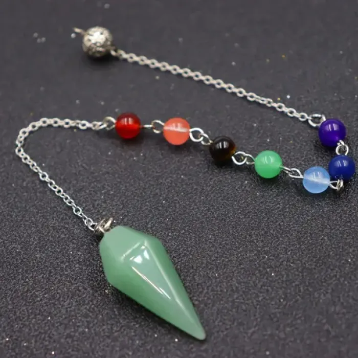Маятник 7 Чакр Кристалл — сувенирный аксессуар из бижутерного сплава с покрытием под серебро и натурального нефрита.