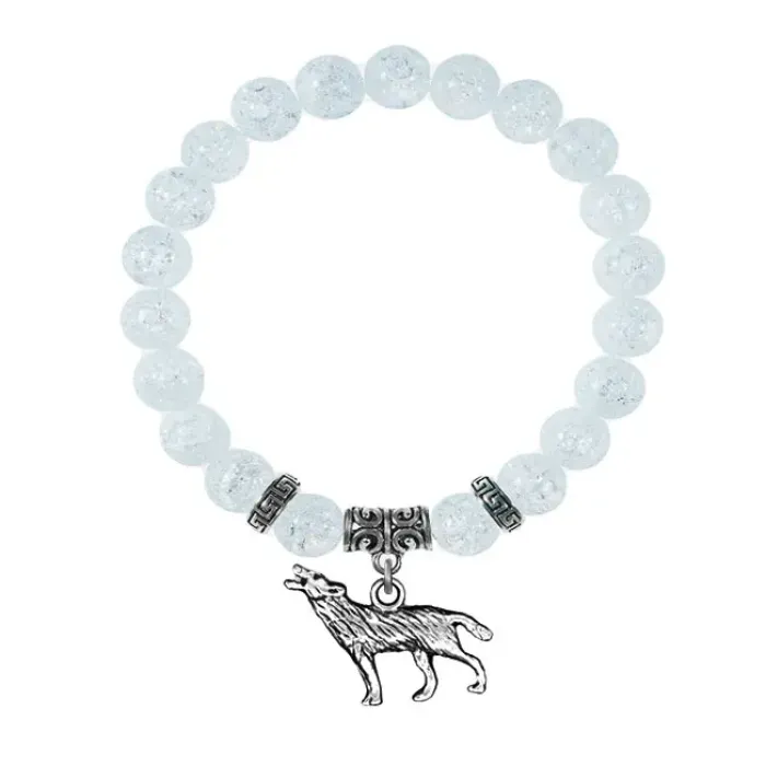 Браслет-амулет из синтетического сахарного кварца с подвеской в виде волка.