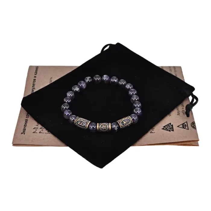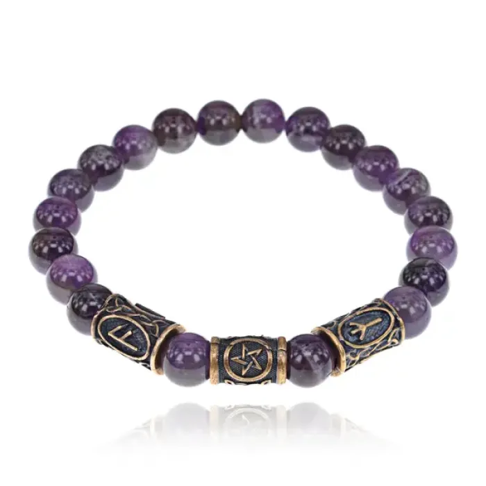 Рунический браслет - амулет Успехи в магии с нат.камнем Аметист BSRA-009