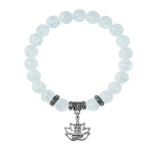 Браслет с подвеской в виде лотоса из синтетического сахарного кварца и бижутерного сплава.
