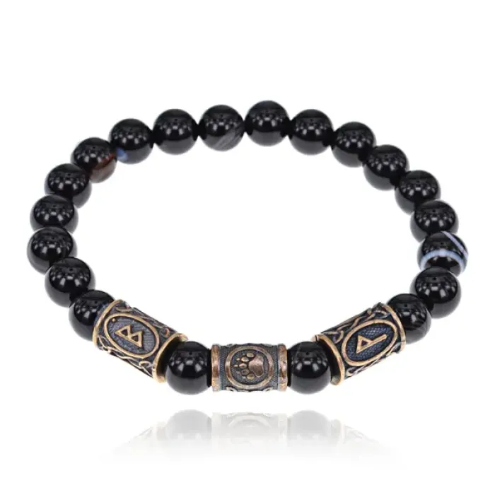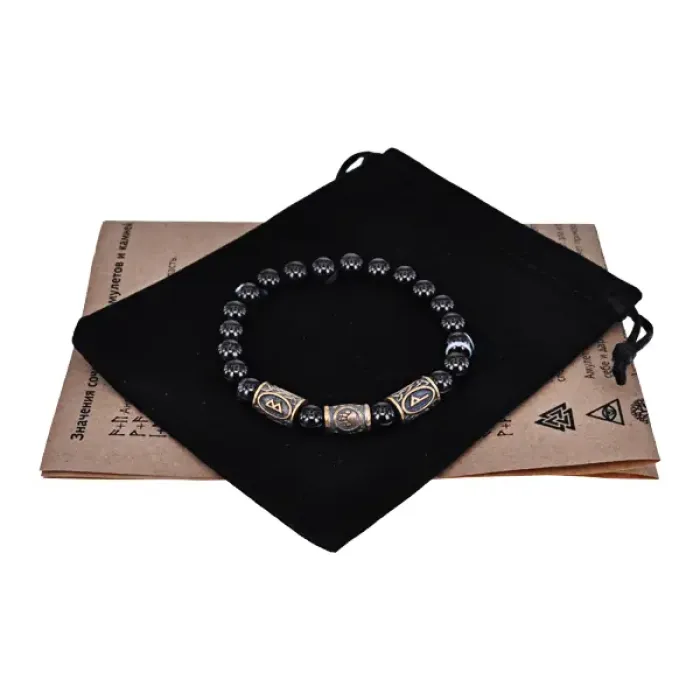 Рунический браслет - амулет Крупный выигрыш с нат.камнем Черный агат BSRA-010