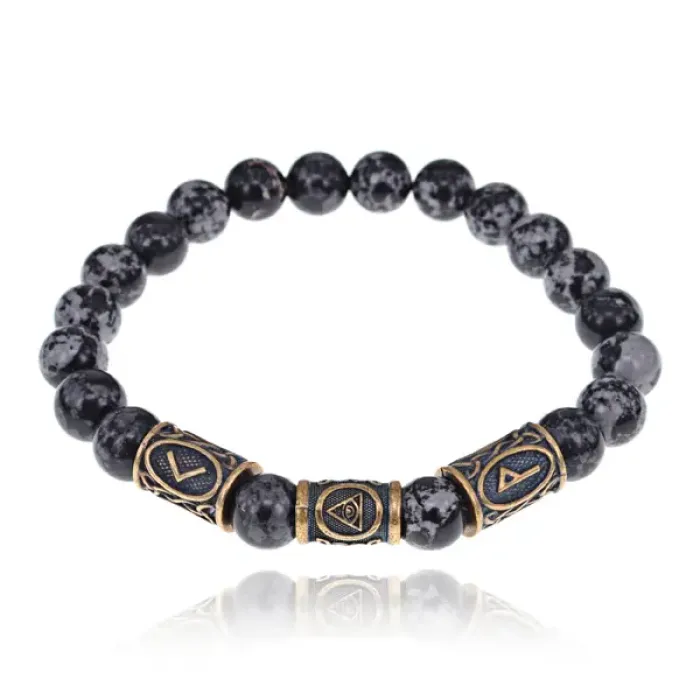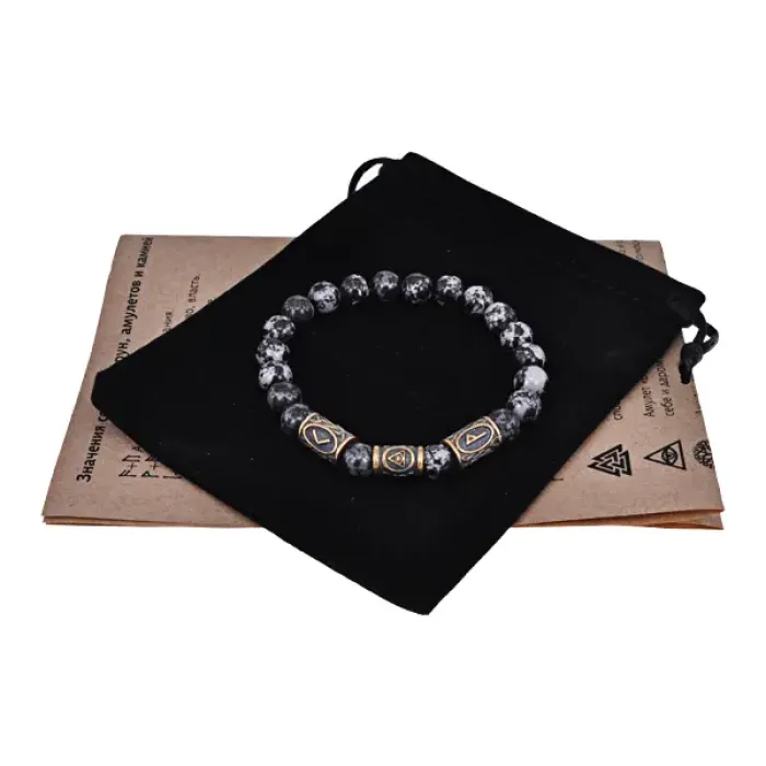 Рунический стрейч-браслет из натурального камня обсидиан с символикой амулета.