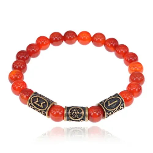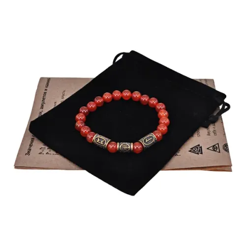 Рунический стрейч-браслет из натурального камня сердолика с символикой амулета.