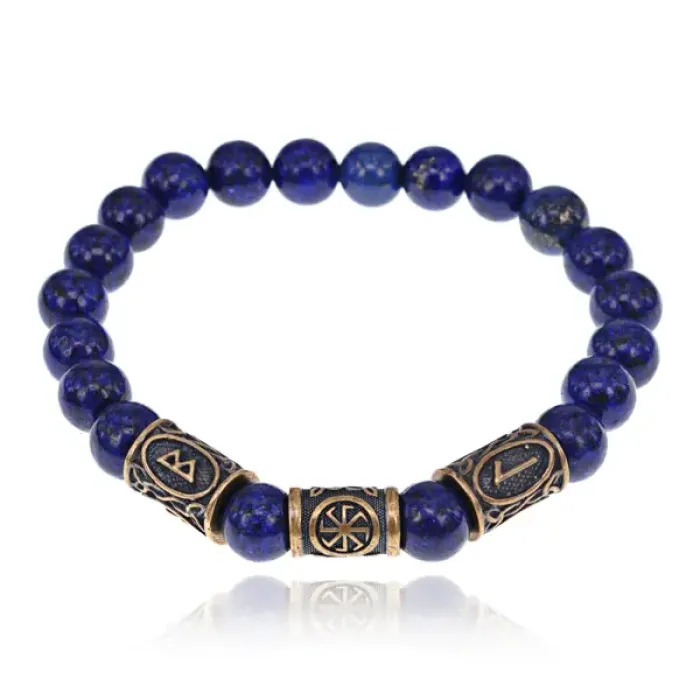 Рунический браслет-амулет Везение на любом пути с нат. камнем Лазурит BSRA-017