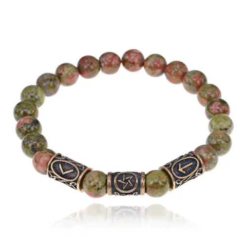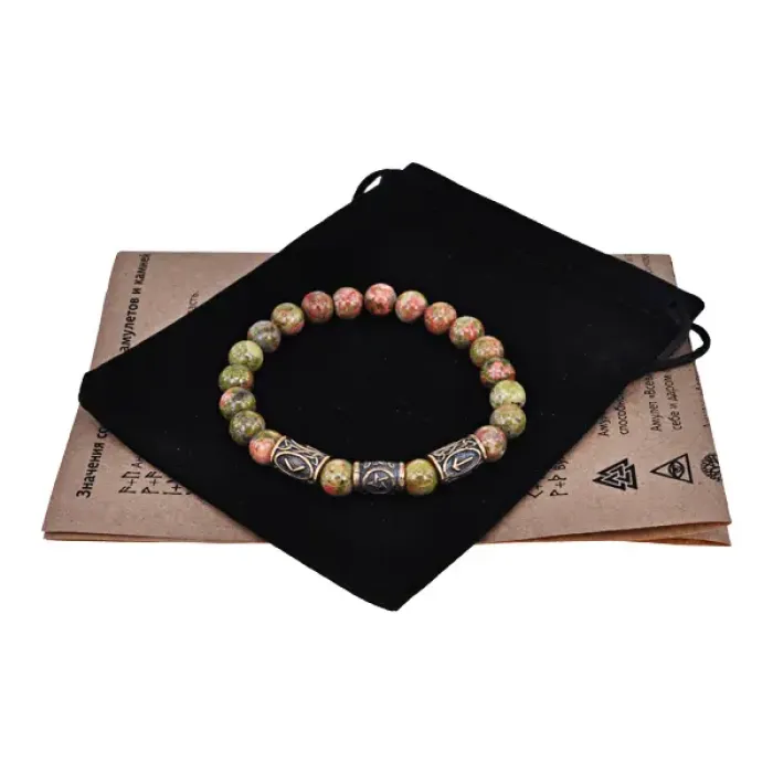 Рунический браслет - амулет Воплощение мечты с нат.камнем Унакит BSRA-019