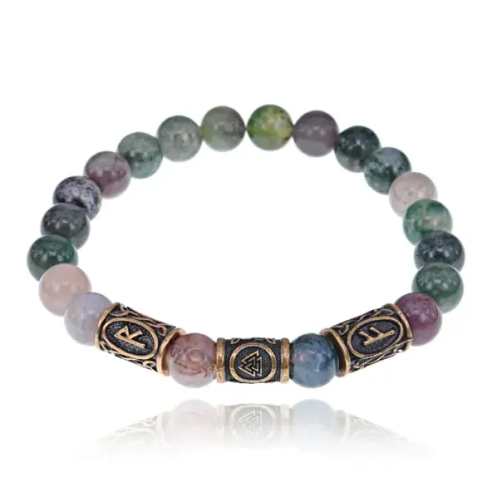 Рунический стрейч-браслет из натурального камня яшмы с символом Валькнут.