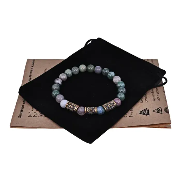 Рунический браслет - амулет Быстрый карьерный рост с нат.камнем Яшма BSRA-021