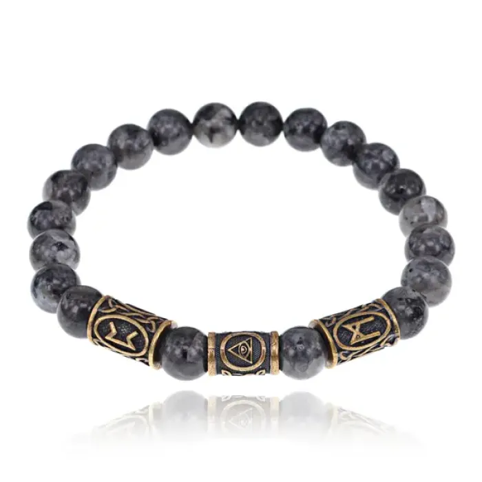 Рунический стрейч-браслет из натурального камня лабрадор с символикой духовного роста.