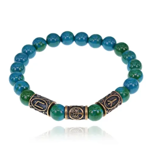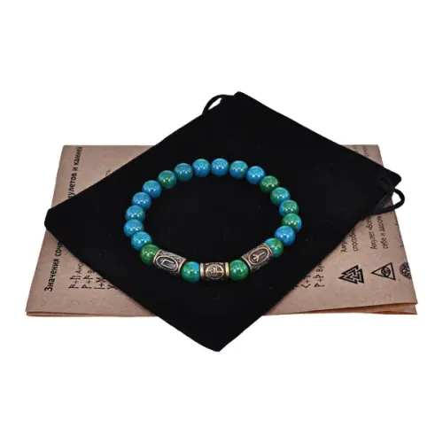 Рунический браслет - амулет Укрепление здоровья с синт. камнем Хризоколла BSRA-023