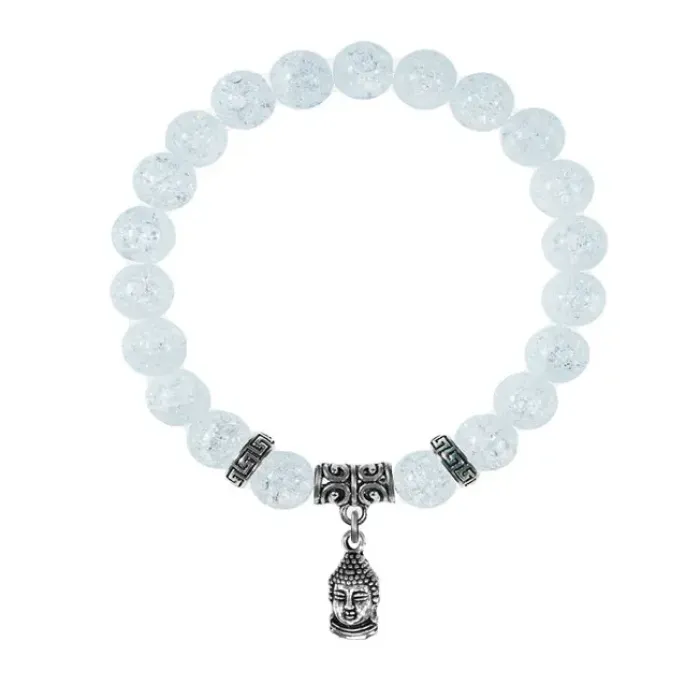 Браслет с подвеской Будда из синтетического сахарного кварца и бижутерного сплава.
