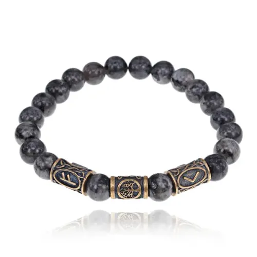 Рунический браслет-амулет Выход из тяжелого положения с нат.камнем Лабрадор BSRA-033