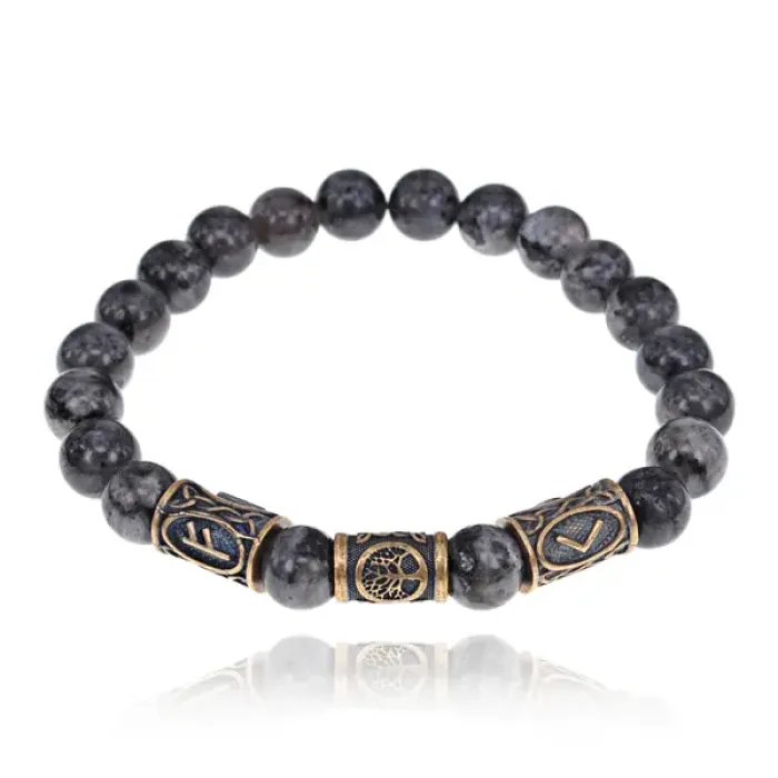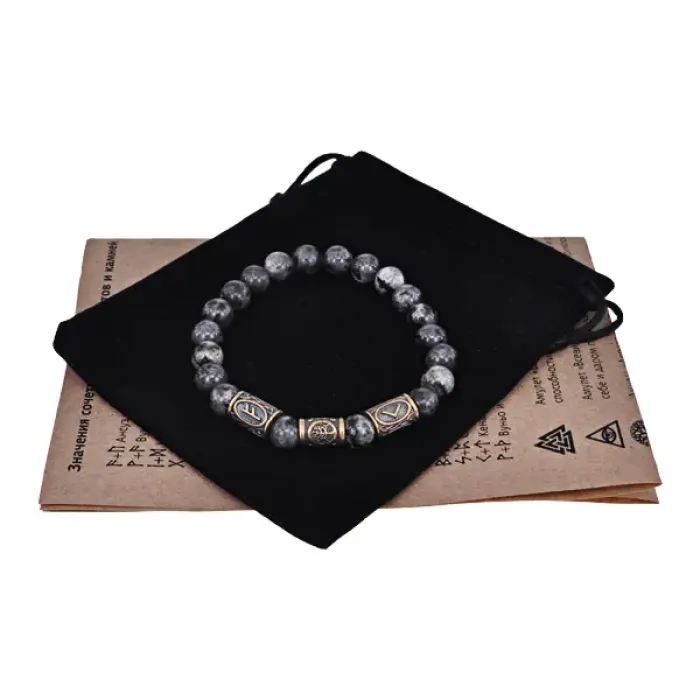 Рунический стрейч-браслет из натурального камня лабрадор с символикой амулета.