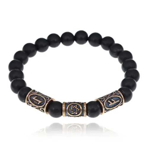 Рунический браслет - амулет Высший хранитель с синт.камнем Шунгит BSRA-034