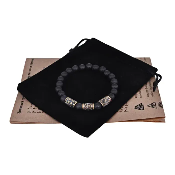 Рунический браслет - амулет Удача в оккультных знаниях с синт.камнем Шунгит BSRA-039
