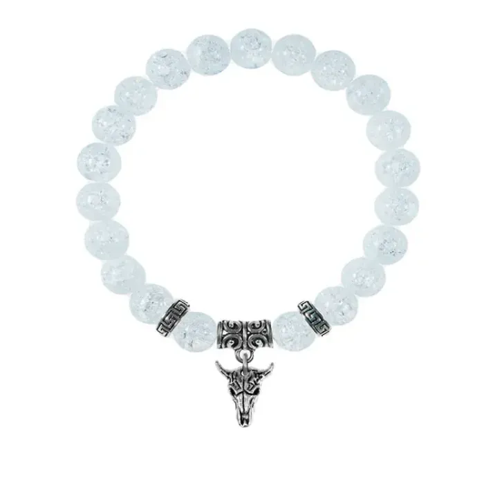 Браслет-амулет из синтетического сахарного кварца с подвеской в виде черепа быка.