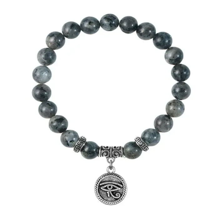 Браслет из натурального камня лабрадор с подвеской-талисманом в виде Ока Ра.