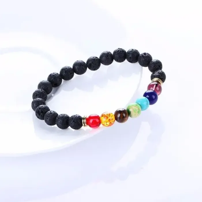Браслет 7 Чакр 8мм из натурального камня Лава