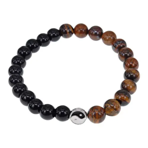 Браслет Инь Ян, 8мм, тигровый глаз и черный агат BJBS-305-4