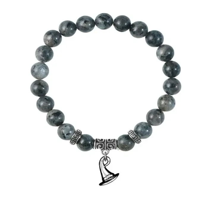 Браслет-амулет из натурального камня лабрадор с подвеской из бижутерного сплава.