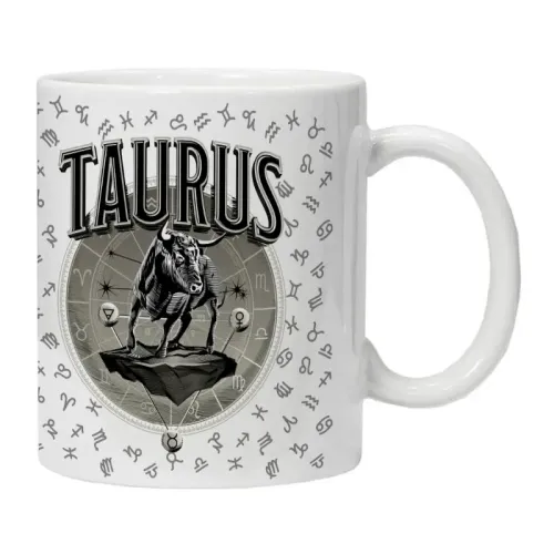 Кружка предназначена для подачи горячих и холодных напитков. Изделие относится к серии «Знаки Зодиака» и украшено изображением символа Тельца.