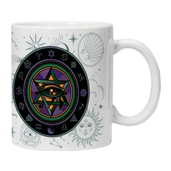 Кружка предназначена для подачи горячих и холодных напитков. Изделие относится к серии с декоративным принтом «Око Гора».