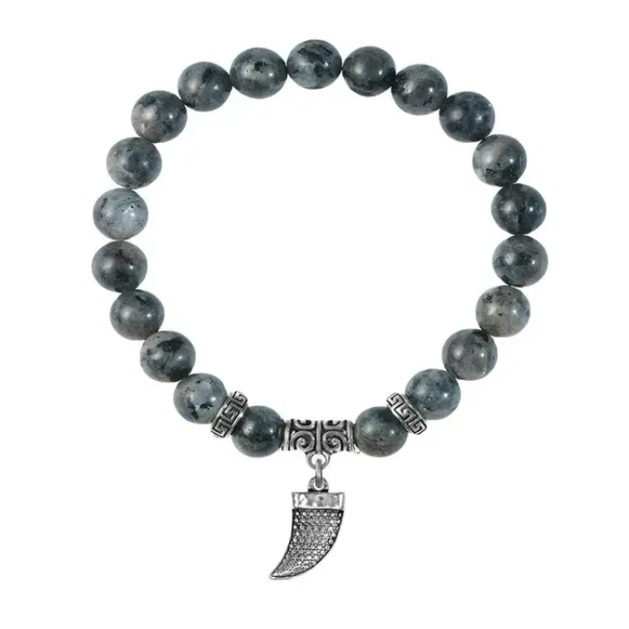 Браслет-амулет из натурального камня лабрадор с подвеской из бижутерного сплава.