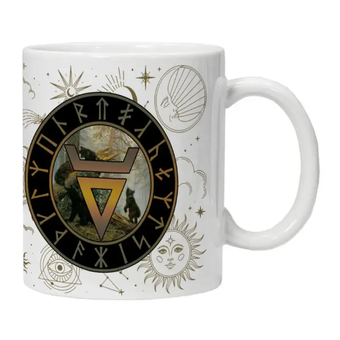 Кружка предназначена для подачи горячих и холодных напитков. Изделие относится к коллекции «Велес» и украшено тематическим изображением.
